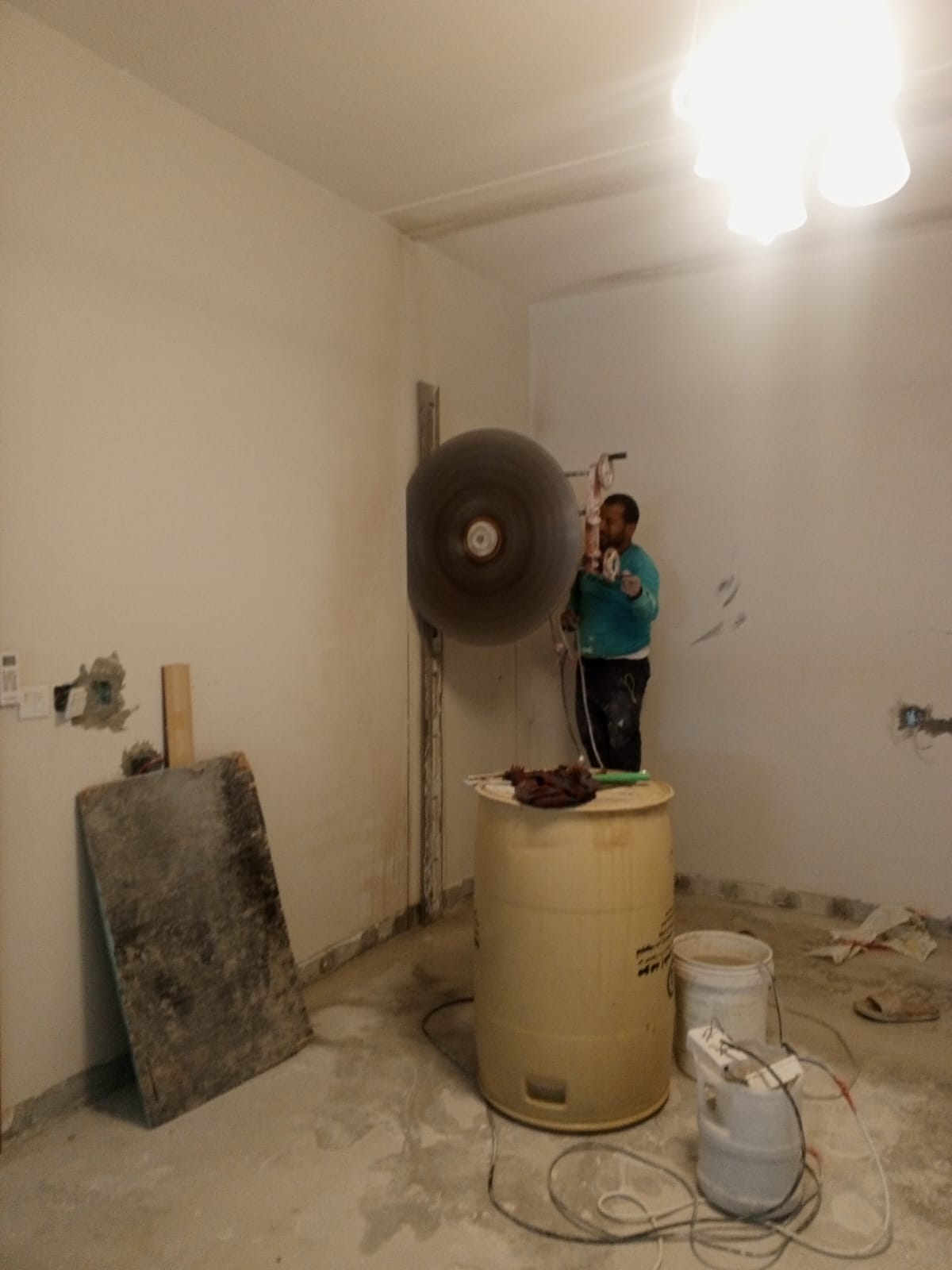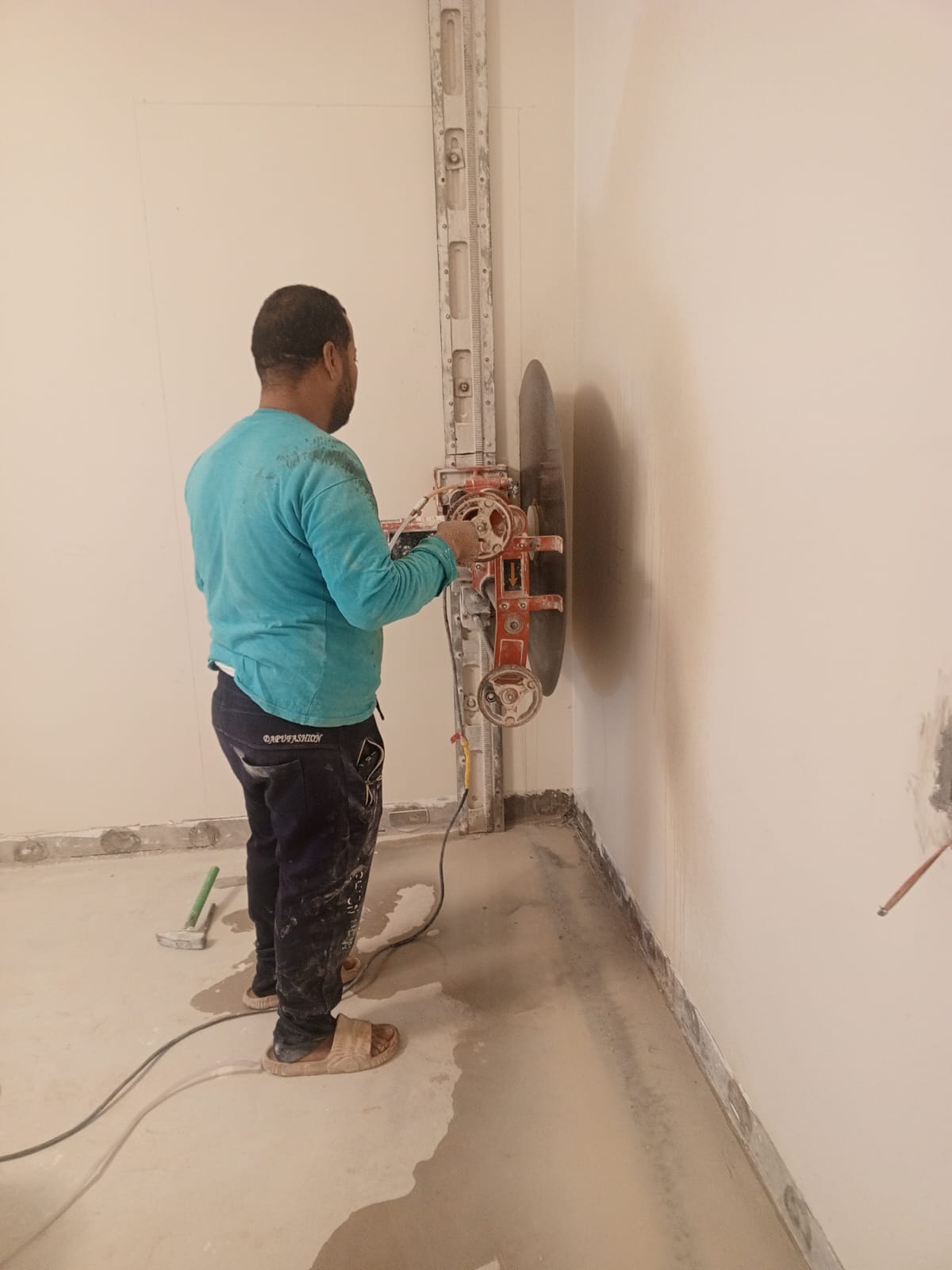 قص الأرضيات الخرسانية لتمديد أنظمة السباكة والكهرباء.