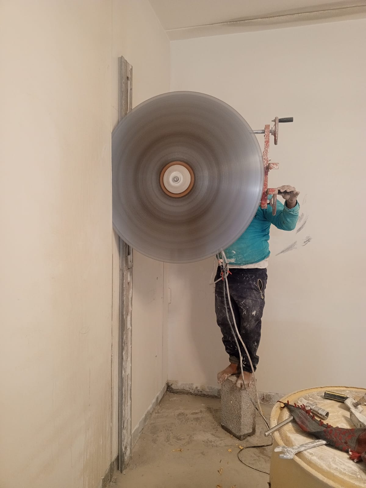 قص الجدران الخرسانية لعمل فتحات الأبواب والنوافذ.